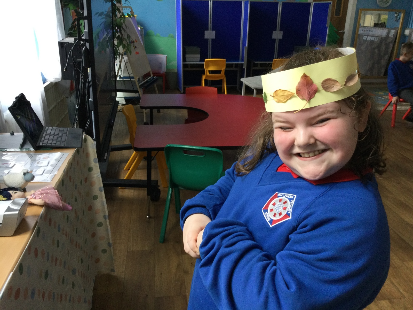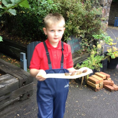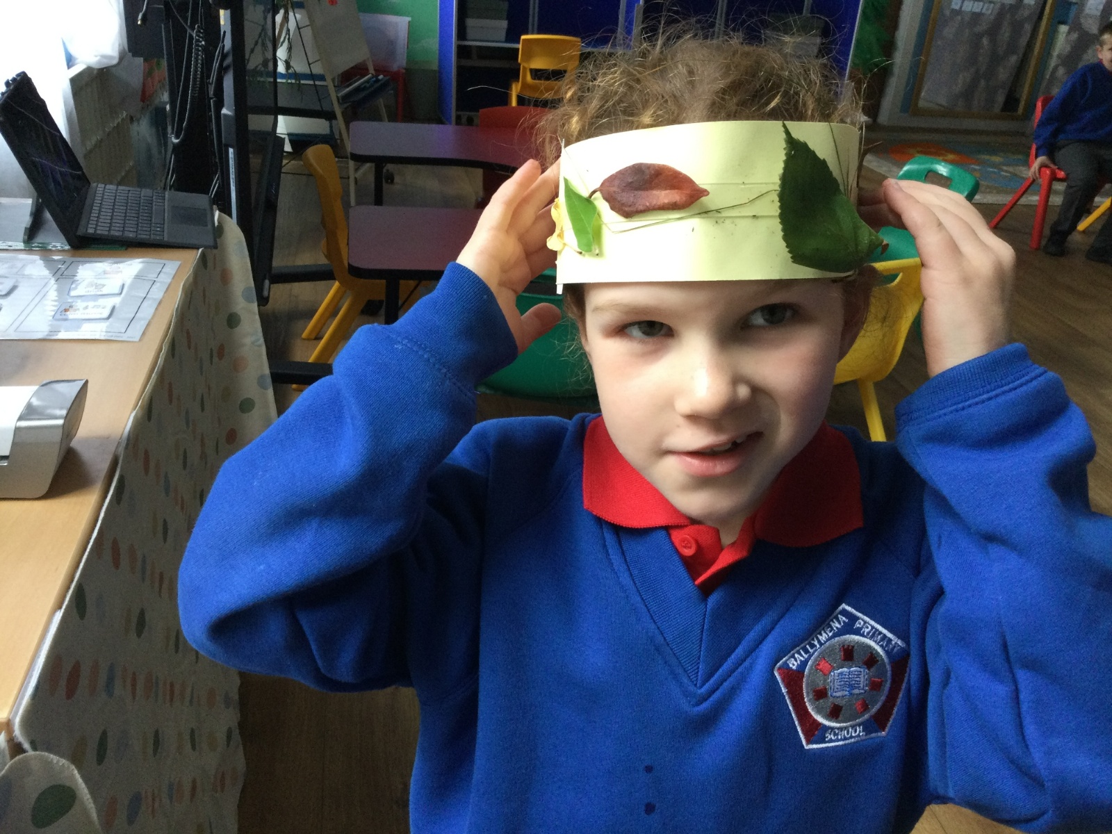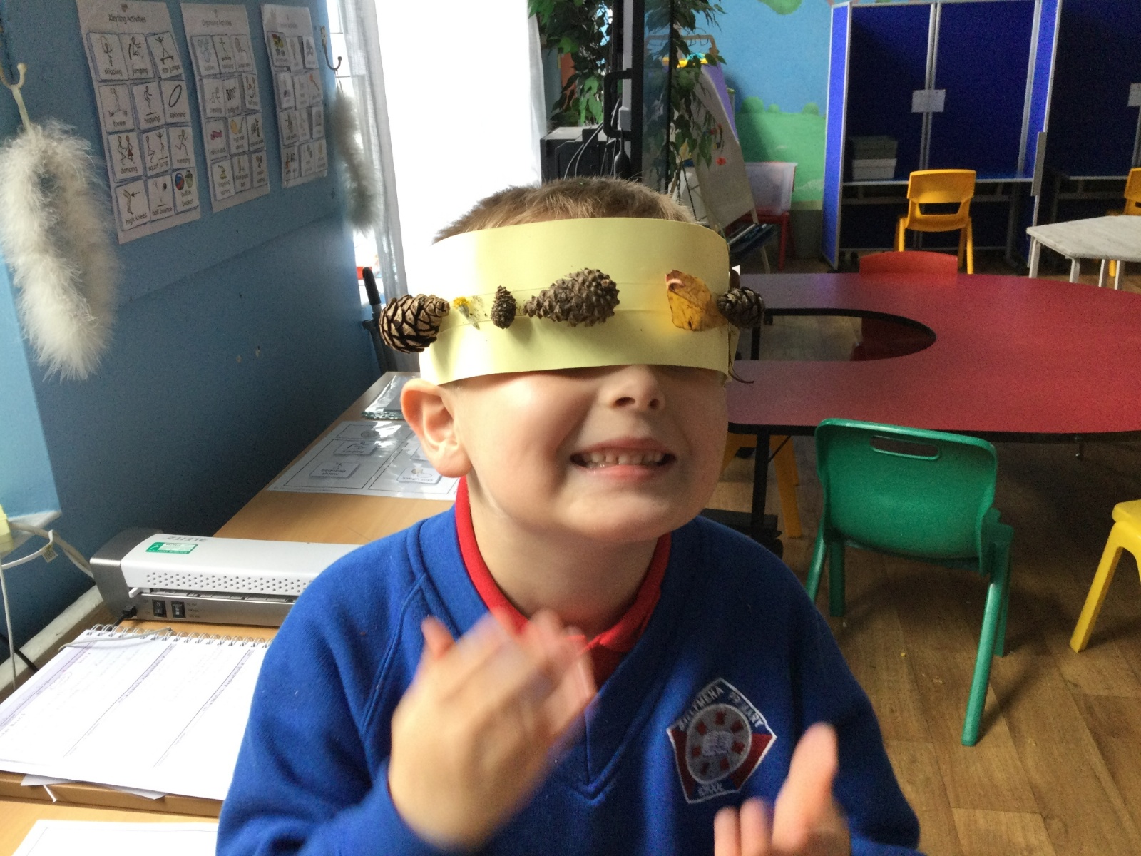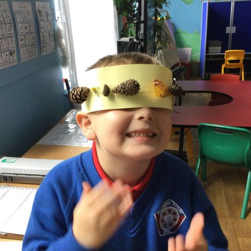 The children in SPL2 created beautiful nature crowns after collecting pinecones, leaves, and twigs from the outdoors.