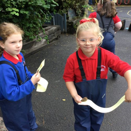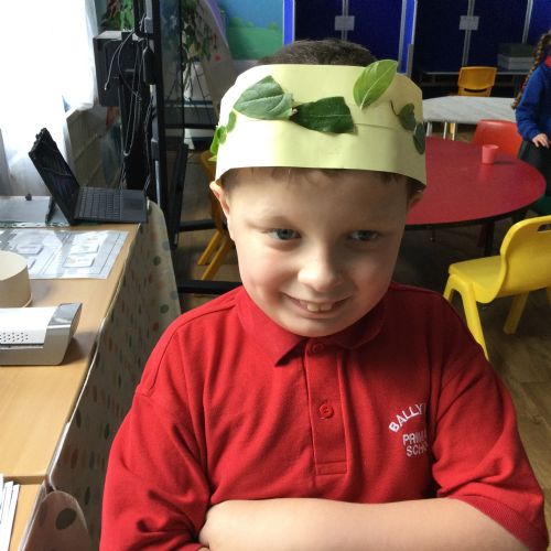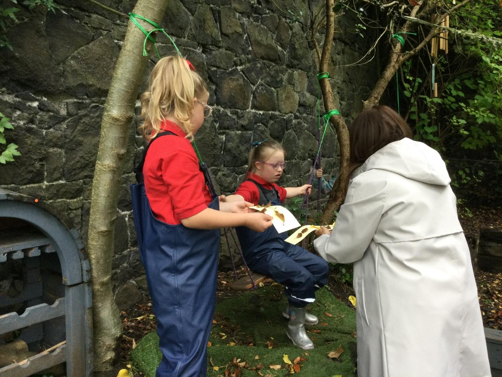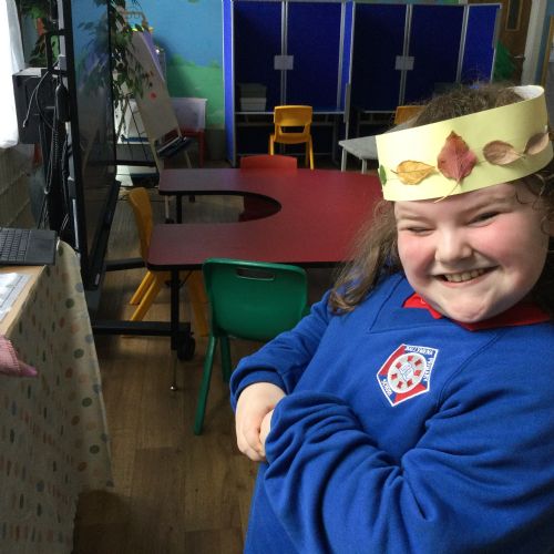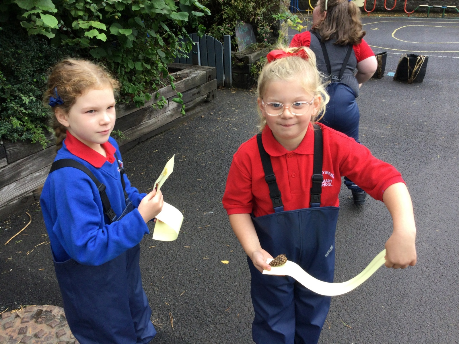 The children in SPL2 created beautiful nature crowns after collecting pinecones, leaves, and twigs from the outdoors.